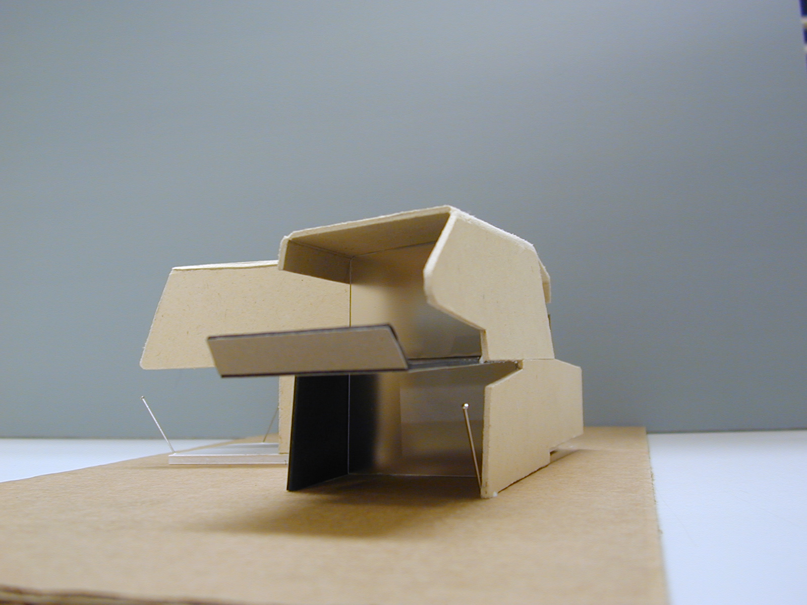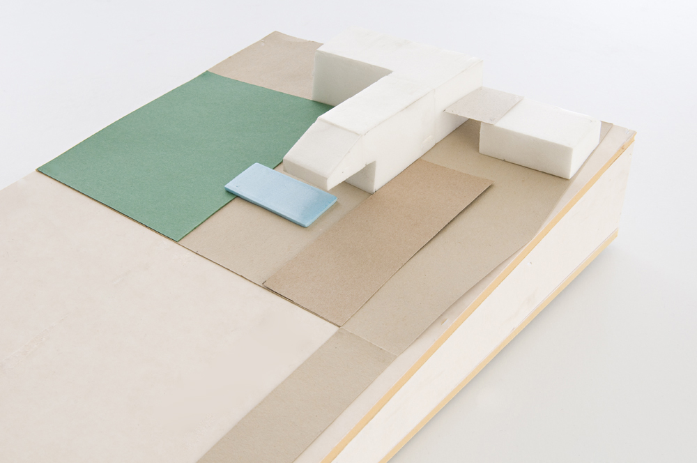 Die Grundstruktur des Gebäudes wurde aus zwei gefalteten Halbräumen entwickelt, die sich in mehrfacher Hinsicht gegenseitig durchdringen. Der L-förmige Grundriss wird zum einen durch einen hangparallelen Baukörper mit angesetzten Nebengebäuden, zum anderen durch einen aus dem Hang herausragenden, im Obergeschoss freitragenden Teil gebildet. Das Wohnhaus ist als Scheibentragwerk mit Öffnungen in konstruktiv zulässiger Art konzipiert. Die Erschließung erfolgt von der Holzgasse im Untergeschoss, das vom Gartenniveau über begehbare Glasdächer belichtet wird. Im südlichen Gartenbereich ist ein Swimming-Pool vorgesehen. Die Süd- und Westfassaden sind für passive Solarenergie-Nutzung konzipiert. In Mischbauweise werden Stahlbetonbauteile mit holzbeplankten Stahlrahmen und Metallfenstern kombiniert. Die Wohnräume sind zur innenliegenden Terrasse geöffnet, im Obergeschoss wird hinter einer Schirmwand ein Balkon ausgebildet.
