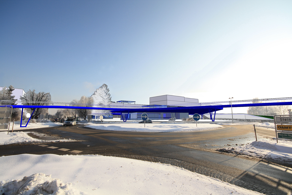 Die der Stadtkernrandlage entsprechende Infrastruktur wird neu geordnet und durch die Anordnung von Höhenwegen auch im Bereich des Kreisverkehrs neu akzentuiert.
