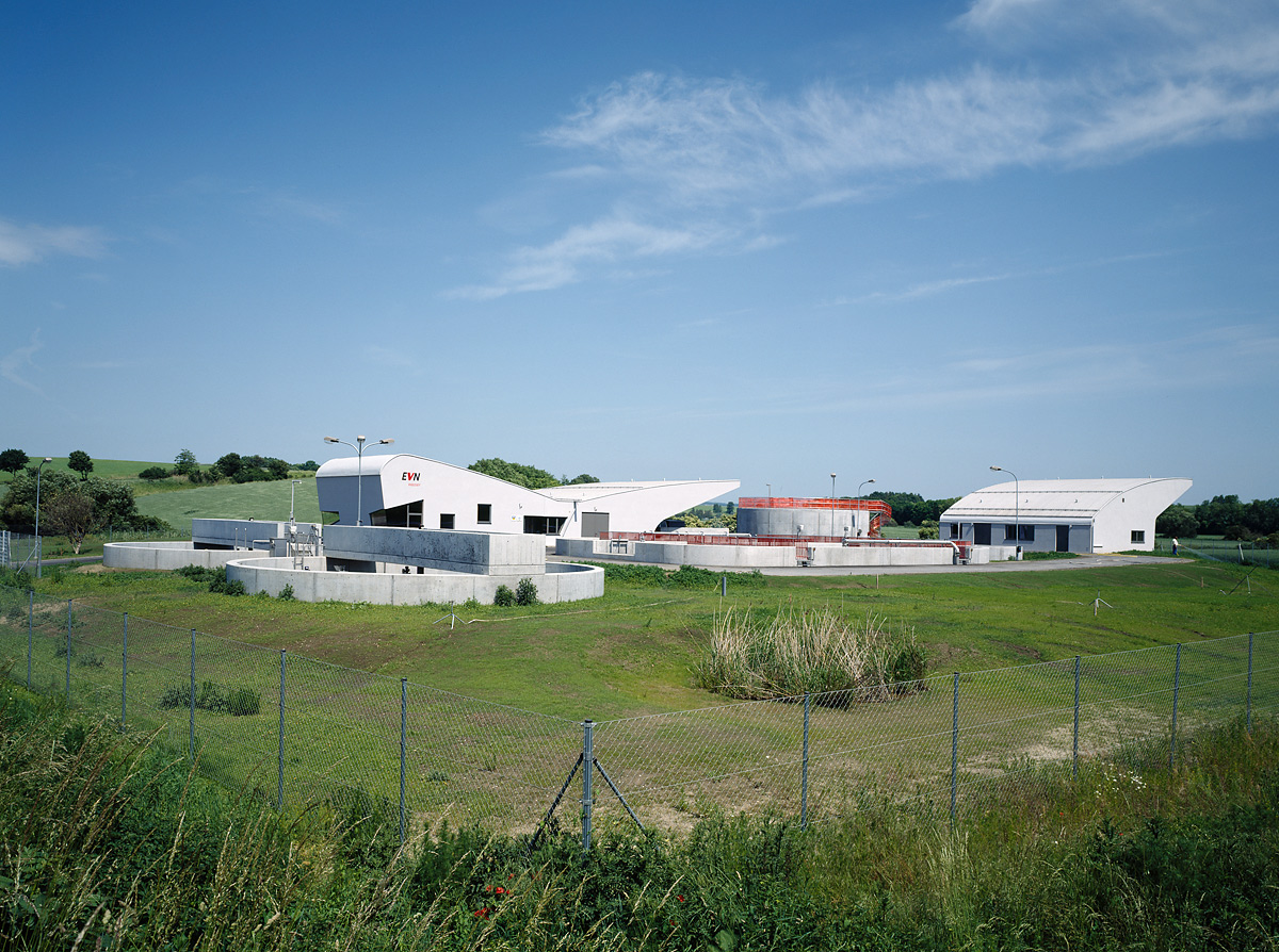 Niederösterreich ist ein Land mit fruchtbaren Feldern, Weinbergen und barocker Lebenskultur. Der stinkenden Abwässer am Ende der Nahrungsmittelkette entledigte man sich kurz und schmerzlos in Senkgruben. Steigendes Umweltbewusstsein führte in den 90ern zu strengeren Auflagen für die Nitratwerte im geklärten Abwasser, dazu kam auf Landesebene eine Verordnung, die den Bau von Kläranlagen forcierte. Die wurden von Technikern geplant, gaben sich nach außen unverfänglich und bedienten sich dafür regionaler Typologien wie dem Weinkeller oder Einfamilienhaus.