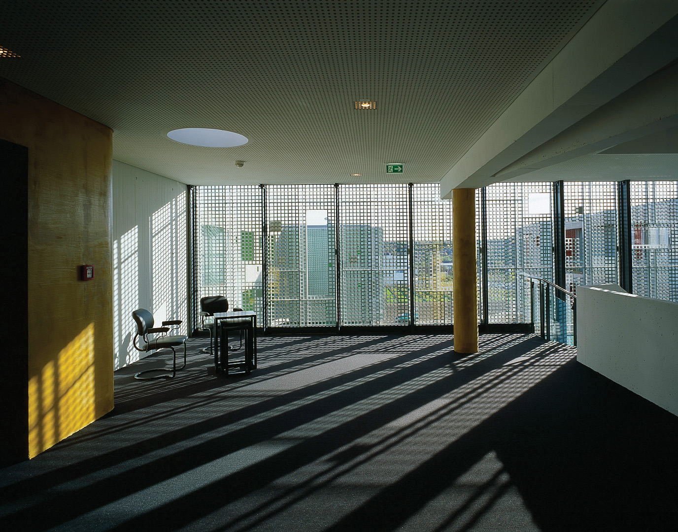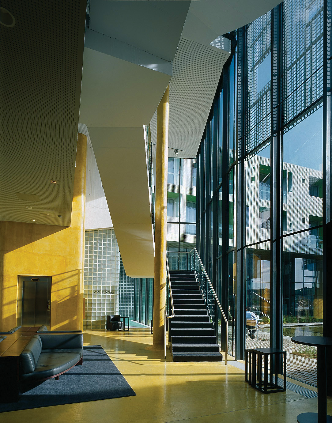 Nach dieser Anfangs-Erfolgsstory konnte der gesamte Masterplan mittels der Ergänzung eines Themenhotels realisiert werden. Auch hier bedienten sich die Bauherren nicht der in der Branche verbreiteten, weitgehend standardisierten Folklore-Planungen, sondern blieben ihrem kulturellem Anspruch – und damit dem Architekten treu. Steven Holl entwarf dafür eine geradezu metaphorische Form über den Erdgeschoßstützen entwickelt sich mit dem Obergeschoß eine pilzförmig auskragende Grundstruktur. Diese Formentscheidung ist doppelt intelligent, denn sie bedient einerseits die Erwartungen eines deutlichen Symbols in der Landschaft und ermöglicht andererseits ein künstlerisches Programm, das um die organoide Formtradition kreist. Die Symbolebene ist Marketinginstrument, dazu dienen Wellness-Schlagworte wie “aus der Erde gewachsen”, während die künstlerische eine Reihe von Details inspiriert, die auf die Geschichte der modernen Architektur anspielen. So erinnert schon die charakteristische Silhouette des Gebäudes an Friedrich Kieslers Vision eines .Endless House”, die dieser austro-amerikanische Avantgarde-Pionier in den 1950er Jahren entwickelt hatte. Betritt man die Lobby des Hotels, so fällt als erstes der dominierende Gelb-Schwarz-Akkord des Interior Designs auf. Gelbgestrichene Rundsäulen sind mit dem gelben Boden durch gelbe Hohlkehlen statt klassischer Säulenbasen verbunden, eine Gruppe ungewöhnlicher schwarzer Sitzmöbel zieht die Blicke auf sich und entpuppt sich – auch durch ein an die Wand gemaltes Zitat des Designers – als Entwurf von Friedrich Kiesler, der mehr als ein halbes Jahrhundert nach seiner Entstehung erstmals vom Design-Möbelhersteller Wittmann aus dem nahen Etsdorf am Kamp in Serie produziert wird. Auch die übrigen Bereiche des Hotels folgen einer präzisen Farbregie und Designphilosophie. Holl selbst hat dafür etwa Restaurant-Sitzmöbel entworfen, die ebenfalls von Wittmann ausgeführt wurden. So wie die markante Lampe über der Bar und wie ein Bodengestaltungsmotiv im Spa-bereich setzen sie die Geschichte des organoiden Designs fort, die gerade in der US-Avantgarde durch die intensive Aufnahme surrealistischer Inspirationen seit den 1940er Jahren eine große Tradition hat.